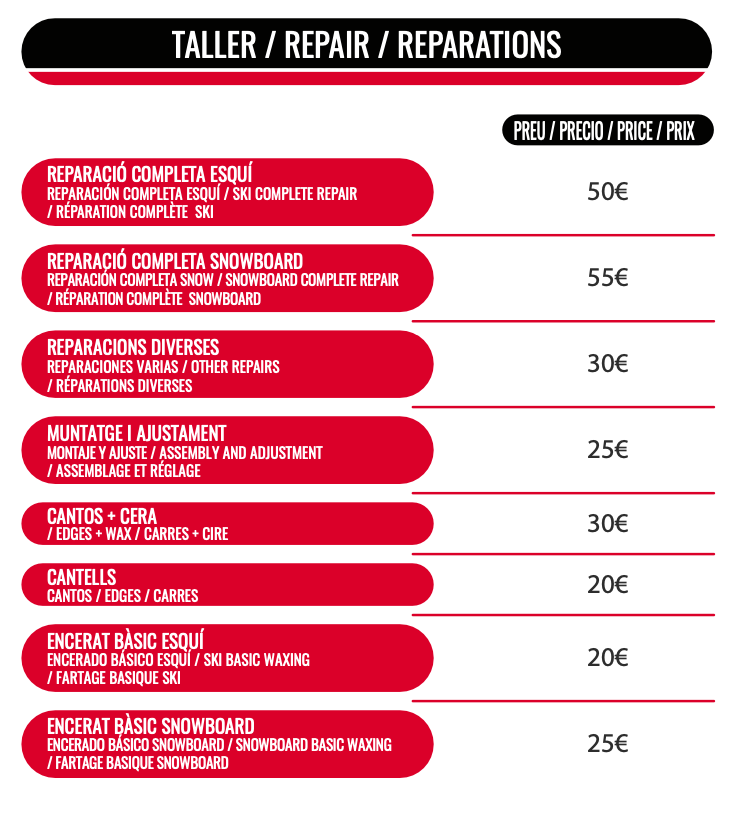 La reparación y el mantenimiento de tu material de esquí no está suficientemente valorado por la mayoría de los esquiadores. El mantener un material en perfecto estado, aporta una mayor seguridad y confort al esquiar. Permite adaptar tus esquís y snows a las condiciones de la nieve. Es un elemento fundamental para mejorar la seguridad y disfrute en tu día de esquí.
